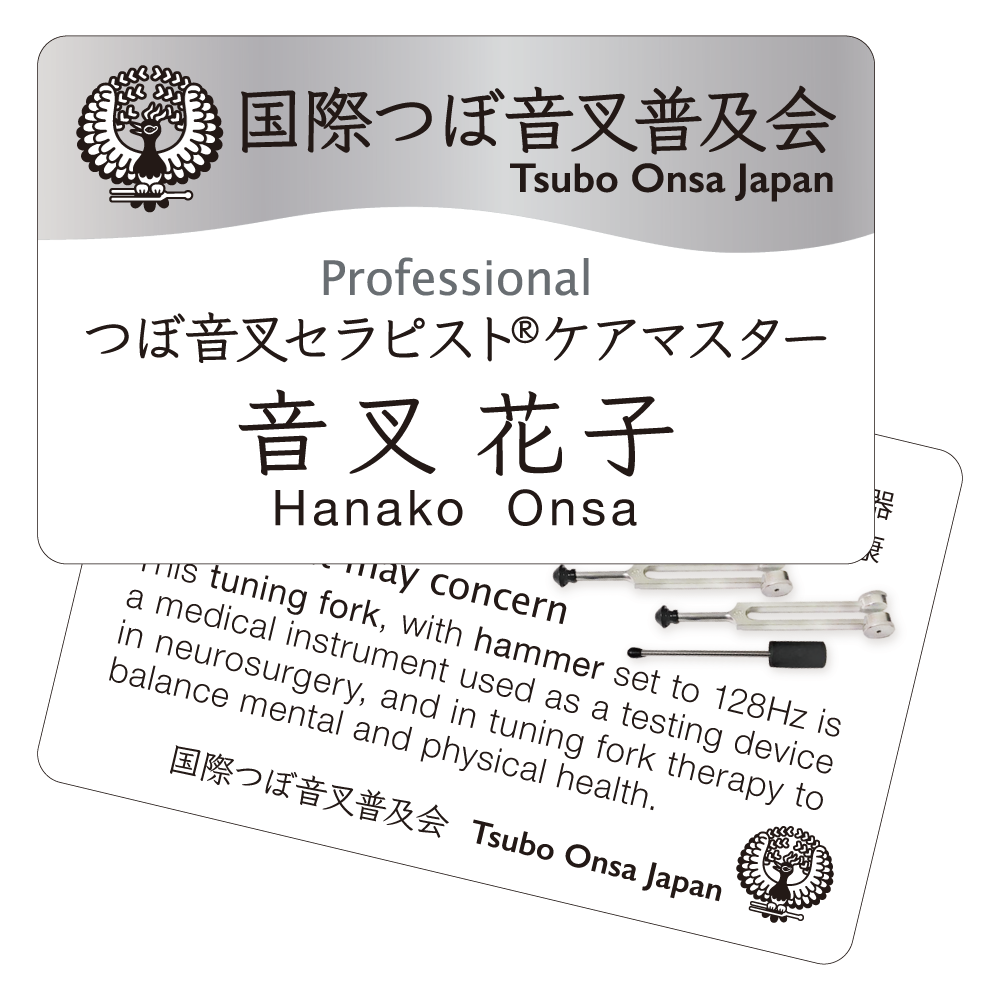 修了後は、「つぼ音叉セラピスト ® ケアマスター」として認定。